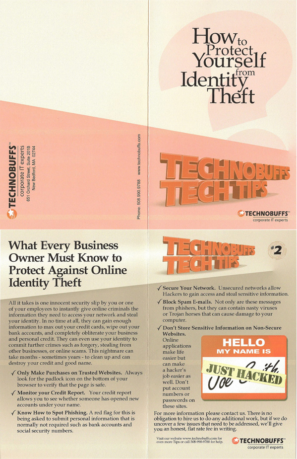 An example of multiple mailers that covered various IT topics for Technobuffs was created for potential clients and as helpful aids for current clients.